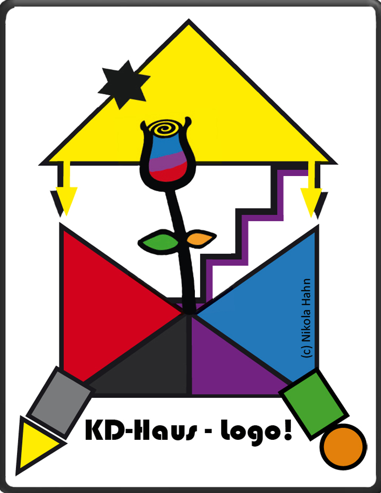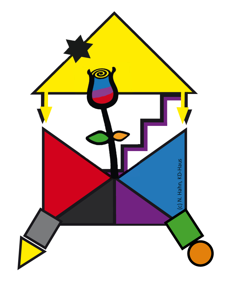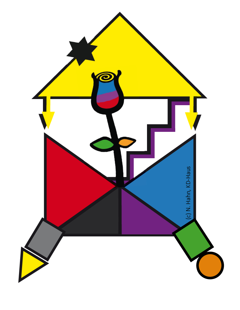 Das Logo zum "KD-Haus" versinnbildlicht die elementaren Themenfelder und die Prozesshaftigkeit des Modells. Es steht in verschiedenen Ausführungen zur Verfügung. Ausführungen zum Hintergrund und die Herleitung erfolgen in Teil III (Kriminalistik 5/24, Pkt. 5).